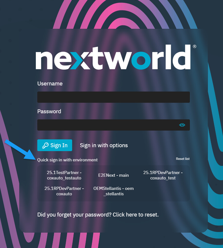 Hi, is there a way to enable the “Quick sign in with environment” list when I sign in to NextWorld?
